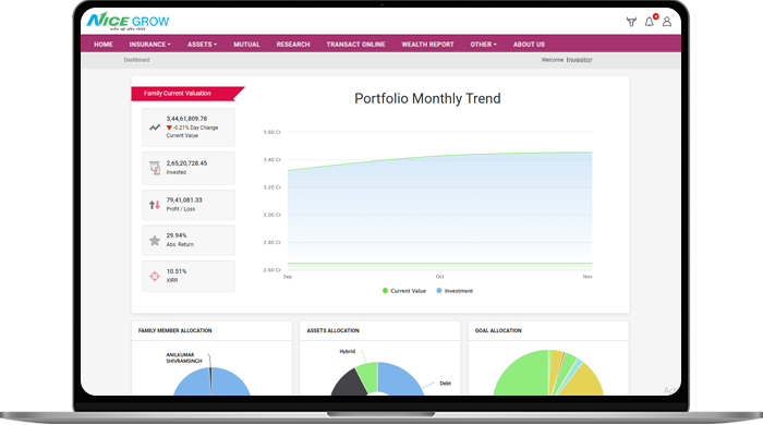 Nice Finbest is a Mutual Funds Distributor registered with AMFI, which had been providing similar services for over 10 years, to the satisfaction of its clients. We offers a wide array of products and services, including integrated Financial planning, Wealth management, Tax Consulting services , Insurance & Mutual Fund. We serves over 1200 clients, high net worth families and individuals and retail investors. Our aim is to provide independent, high quality and customized Services to Individuals. “Maximizing Wealth” is the first and foremost motive of us.